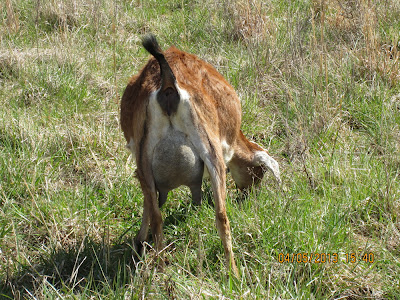 After observing her, I realized she was unable to push the kid out on her own so I put on a long pair of plastic gloves and used mineral oil as a lubricant. I waited until a contraction passed and then went in to feel if I could move the kid. I couldn't get a good sense of whose legs and bodies I was feeling and Ruth seemed to be very uncomfortable (who could blame her!) so I hooked my hands around the hip joints of the kid and slowly pulled while Ruth pushed. I stopped pulling as soon as she stopped pushing and waited until her next push...then the kid was out! A beautiful, healthy buck kid!